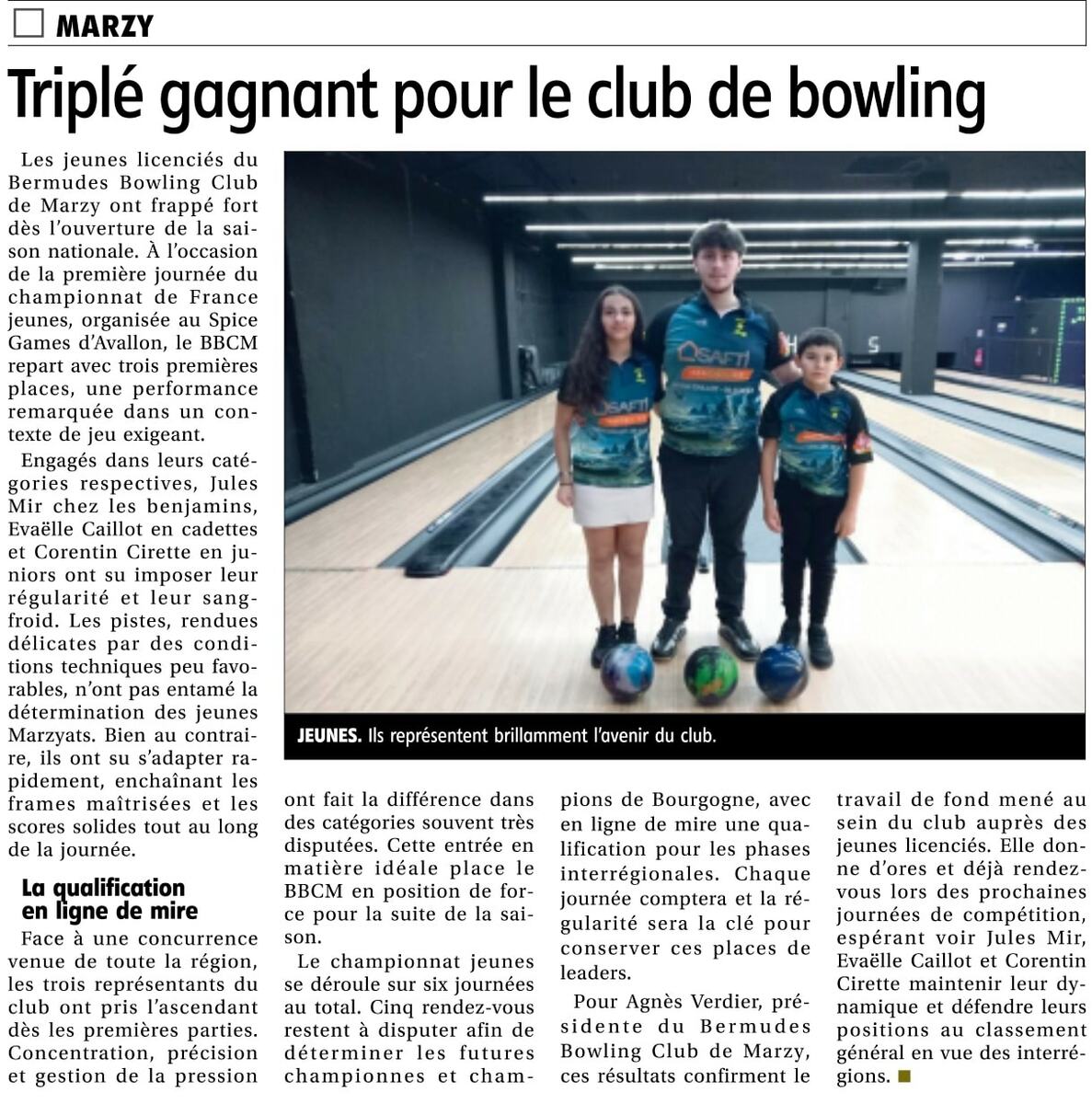 Les jeunes licenciés du Bermudes Bowling Club de Marzy ont réalisé une performance remarquable lors de la première journée du championnat de France jeunes, organisée au Spice Games d’Avallon. Le club repart avec trois premières places dans leurs catégories respectives.